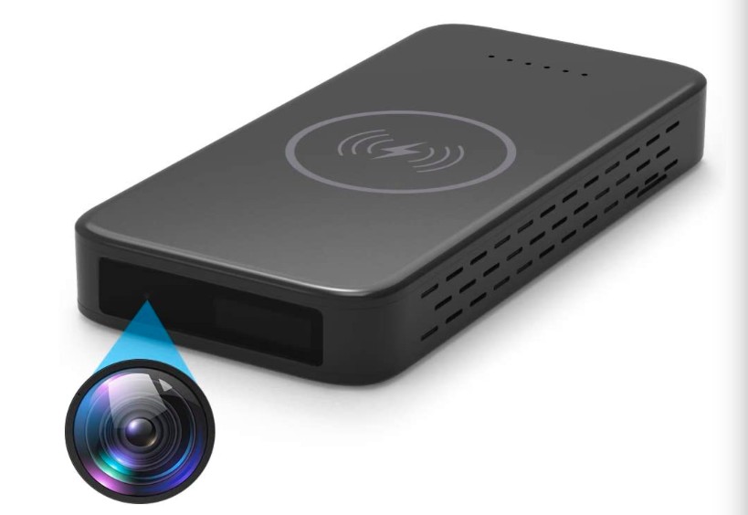 Kamera unauffällig in einer kabellos ladenden Powerbank verborgen – ideal für diskrete, mobile Überwachung.