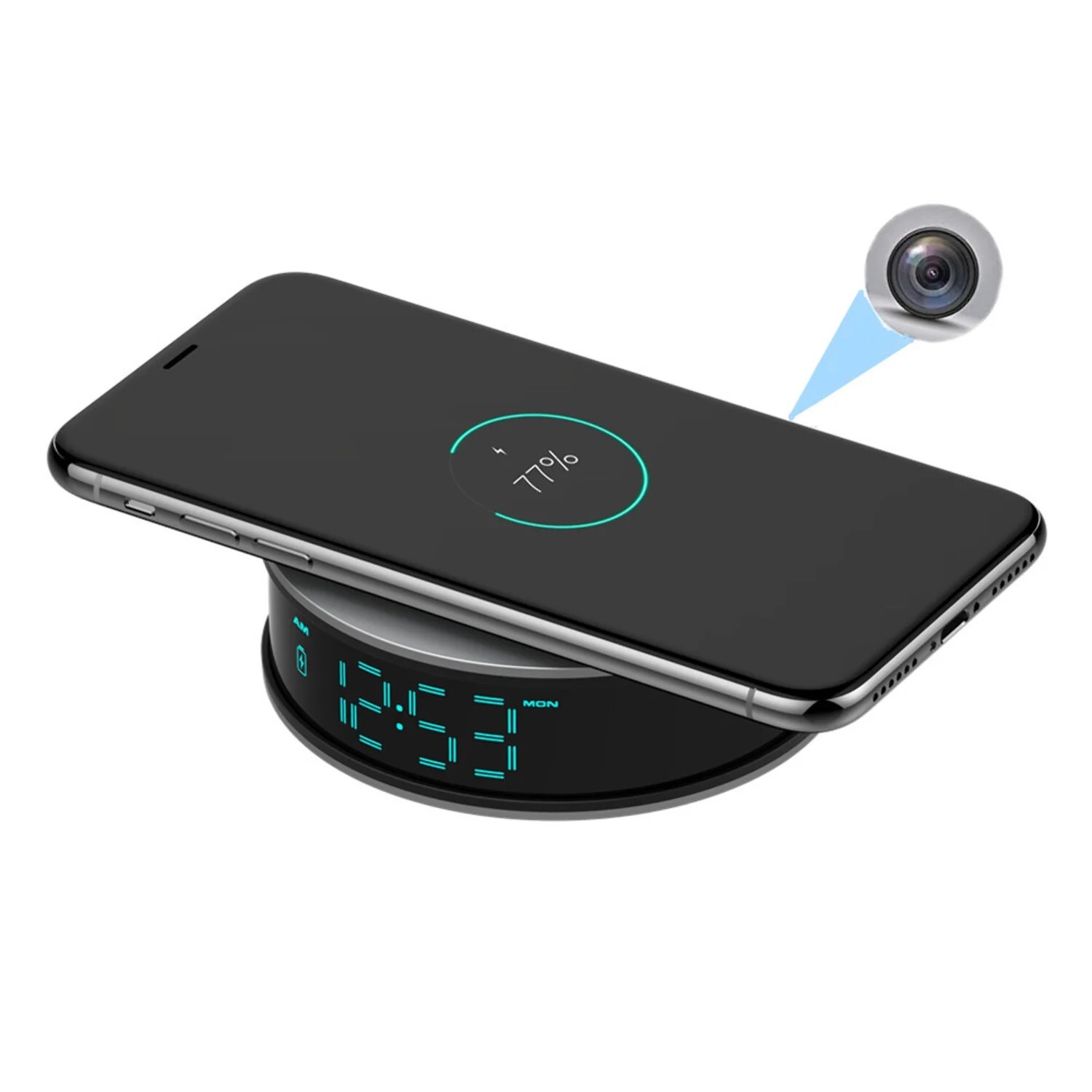 Diese Full HD WLAN Kamera in einem Wecker kombiniert ein unauffälliges Design mit modernen Überwachungsfunktionen. Das Gerät sieht aus wie ein klassischer Tischwecker und fügt sich problemlos in Schlafzimmer, Büro oder Wohnzimmer ein.